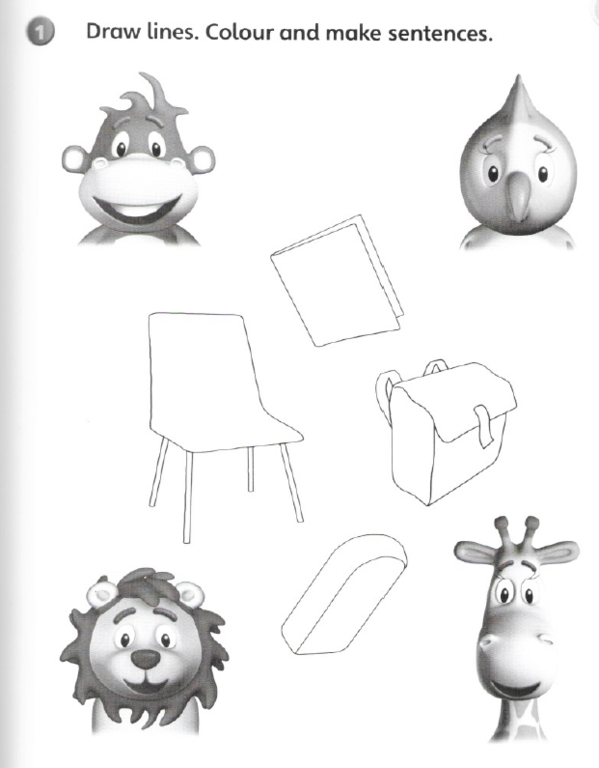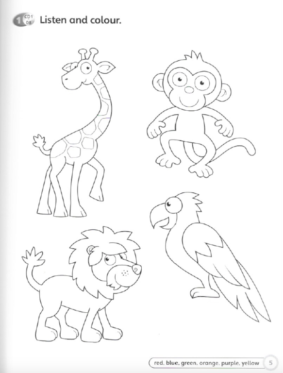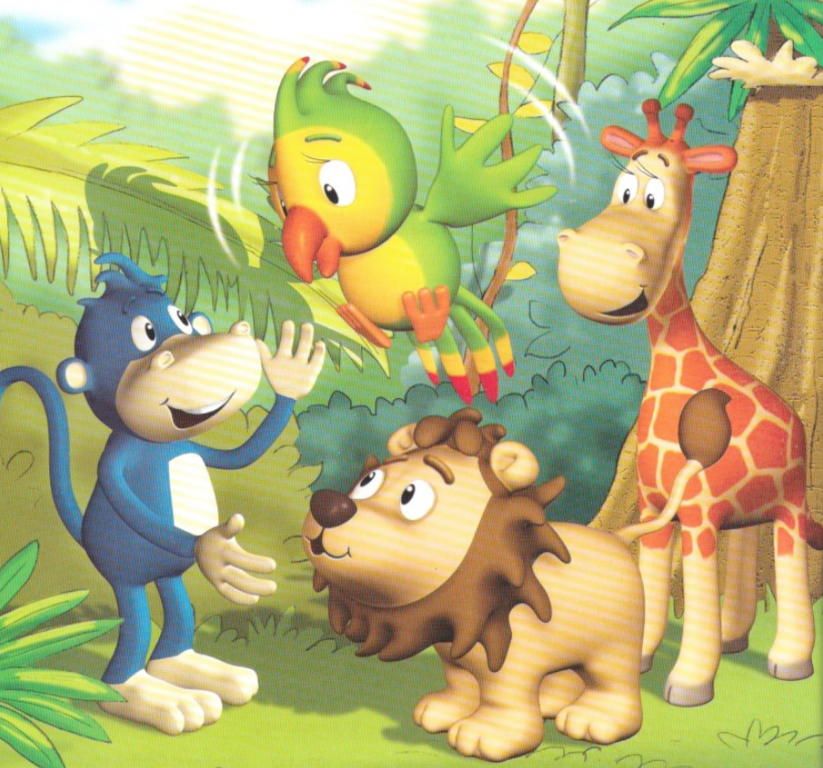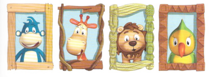 Nuestros amigos MIKE the Monkey, POLY the Parrot, GINNA the Giraffe AND LEO the Lion